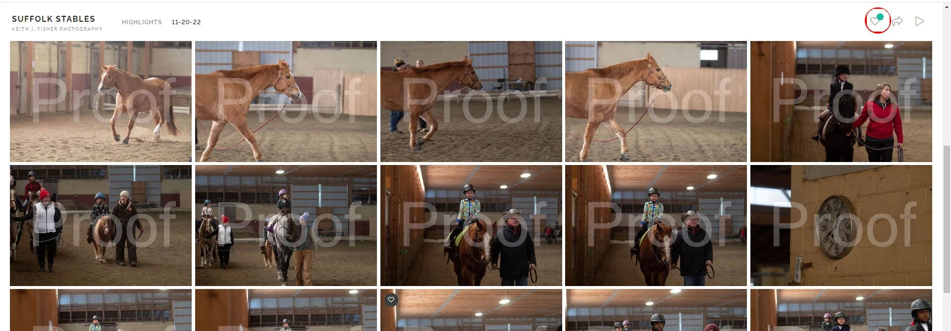 Placing your order is very simple. Just favorite the ones you would like to order. When you are finished picking your photos and are ready to order, go back to the thumbnail previews. At the top left you will see a blue dot on the heart icon.